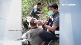 屏東一名獵人上山打獵時被山豬攻擊。(圖/翻攝自Family(肥牡蠣)登山隊). 救難人員到場後趕緊替傷者進行簡單包紮,接著合力把他搬運下山。因為屏東這位獵人18日上山 ...