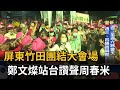 民眾夾道歡迎,民進黨屏東縣長候選人周春米大進場,來到竹田的團結大會會場,以客家庄為主的選民結構,更是找來了桃園市長鄭文燦,幫周春米站台,強調要團結 ...