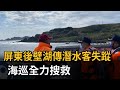 民視新聞/洪明生屏東報導大年初七(1月28日)傳出意外,屏東後壁湖發生有潛水客失蹤,陸海空全力搜救,包括海巡艇、空偵機和岸際人員,今天(1月29日)上午 ...