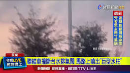 屏東有民眾開車行經,台1線南下455.5公里,發現路旁噴出巨型水柱,水柱往上衝,水花噴濺,超過3層樓高,周邊全是水漬,原來是有聯結車,不慎撞壞「自來水排 ...