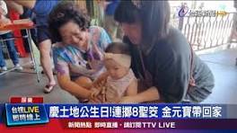 屏東市北極殿大埔福德祠,為了慶祝土地公生日,舉辦「擲筊搶黃金」活動,民眾只要連續擲8個聖筊,就能將一錢價值近萬的金元寶帶回家,活動從10號開始, ...