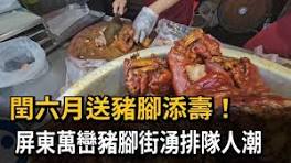 【民視即時新聞】今年是閏六月,台灣民間習俗,遇到閏月,嫁出去的女兒就要買豬腳給父母親添壽。因此,在閏六月的第一個周日,一早在屏東萬巒豬腳街就出現排隊 ...