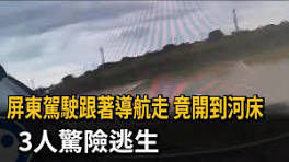 【民視即時新聞】屏東有一名駕駛,昨天深夜疑似不熟路況,跟著導航的指示開車,結果整輛車竟然開到河床,車上三人驚險逃生,詳細狀況連線記者莊舒婷。