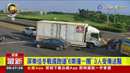 屏東縣戰備跑道今天上午6時許發生6車連環追撞事故,一輛大貨車司機疑陽光反射視線不佳,追撞前方5輛小客車,造成3人受傷送醫...