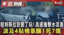 今天下午,屏東恆春發生一起死亡車禍,一輛特斯拉不明原因,高速衝撞水泥預拌車,再波及到等紅燈的4貼機車,導致1死7傷,據了解,這部特斯拉,是駕駛租來的, ...