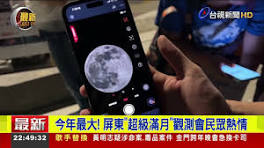 天文奇景「超級月亮」登場!屏東縣政府延續九月,土星衝活動熱潮,今天(5日)晚間7點至9點,在屏東幸福公園停車場戶外廣場,舉辦超級月亮觀測會,邀請民眾免費參與, ...