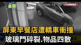 【民視即時新聞】屏東縣長治鄉長興路一間早餐店,昨天傍晚突然遭到一輛自小客車衝撞,玻璃門當場碎裂,店內物品散落一地,五十幾歲的駕駛當時疑似要右轉, ...