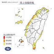... 屏東縣、澎湖縣。 【黃色燈號】 基隆市、臺北市、新北市、桃園市、新竹市、新竹縣、 雲林縣、嘉義縣、臺南市、臺東縣、宜蘭縣、連江縣、 金門縣。 陸上強風 ...