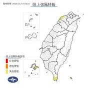 陸上強風特報】 風力偏強,7日晨至8日晚上蘭嶼、綠島、桃園市、新竹縣、屏東縣、澎湖縣局部地區有平均風6級以上或陣風8級以上發生的機率(黃色燈號),請注意。
