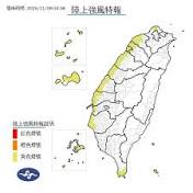陸上強風特報】 東北風偏強,8日晨至9日晚上蘭嶼、綠島、新北市、桃園市、新竹市、新竹縣、苗栗縣、臺中市、彰化縣、雲林縣、嘉義縣、臺南市、屏東縣、澎湖 ...