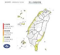 陸上強風特報】 東北風偏強,17日晚上至18日晚上新北市、桃園市、新竹市、新竹縣、苗栗縣、臺中市、彰化縣、雲林縣、嘉義縣、臺南市、屏東縣、臺東縣(含蘭 ...