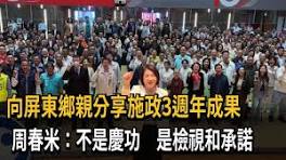 記者毛莉/屏東報導屏東縣長周春米執政滿三週年,這位屏東地方自治史七十二年來第一位女…