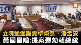 針對行政院長卓榮泰不副署財政收支劃分法,在野黨立委今天(18日)在立法院司法及法制委員會提出譴責案、具名移請監察院彈劾行政院長卓榮泰。