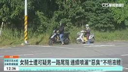 屏東一名25歲的蔡姓女騎士,19日騎車過程中,遭到可疑男騎士尾隨,並趁她停等紅燈時,連續2次噴灑不明液體,女騎士說被噴灑當下,因為當時外套穿很厚,只聞到一股臭 ...