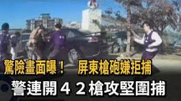 【民視即時新聞】屏東警方昨天圍捕一名非法持有槍彈的嫌犯,由於嫌犯狡猾,之前曾多次逃脫,警方這次圍捕時,計畫周詳,連開42槍,嫌犯雖然沒有開槍, ...