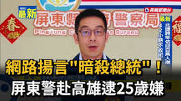 【民視即時新聞】有網友在臉書上留下不當言論,挑明要暗殺總統,屏東警方在高雄大寮逮到嫌犯。連線記曾虹雯。 #台灣新聞#TaiwanNews #民視新聞#FTV新聞#Taiwan ...