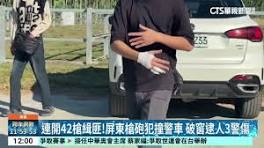 屏東縣警方30日上午,在南州鄉一處牧場圍捕持有非法槍彈的李姓男子,過程中李嫌駕車衝撞警方車輛企圖逃逸,警方在危急情況下連開42槍反擊,最終迫使車輛失控撞牆 ...