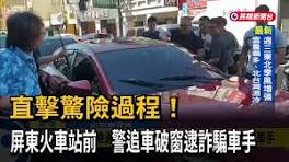 【民視即時新聞】民視新聞/綜合報導屏東火車站前,週二中午,上演了警察追車,破窗逮人的場面,原來是為了要抓詐騙車手,詳細情形,連線記者蘇晟維。