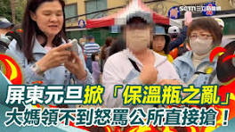 今(1)天是新年元旦,但有屏東民眾參加市公所舉辦的升旗健走活動,因為拿不到限量的馬年保溫瓶,只拿到緊急加發的毛巾兌換卷爆出火氣,一度還和公所人員爭搶拉扯!