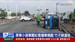 屏東一輛小貨車竟然闖紅燈,撞上左轉休旅車,撞車後,小貨車90度側翻、躺在路面,就連車上載的竹子都掉了滿地,另外高雄前鎮區,機車路口闖紅燈,警方上前攔查, ...