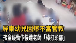 【民視即時新聞】屏東一所幼兒園,有小朋友疑似動作慢,被老師用棒子敲打頭部,畫面曝光,讓家長難以接受,對此幼兒園園長,立即將動手的老師解聘,並與家長聯繫 ...