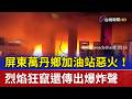 屏東#萬丹#火警屏東萬丹鄉福懋加油,今天晚上7點22分發生大火,火勢猛烈伴隨爆炸音,起火點是後方倉庫,裡頭堆放一些塑膠備用品,所幸第一時間員工切斷油料輸送, ...