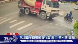 屏東市區建國路、也就是台1線,25日發生嚴重車禍,一輛左轉的預拌混凝土車,和綠燈直行的機車發生碰撞,導致騎士重摔、安全帽噴飛,傷勢嚴重,目前還在搶救中。